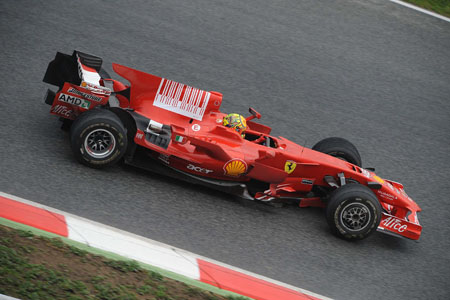 Στην πίστα της Καταλονίας της Βαρκελώνης, ο 9 φορές παγκόσμιος πρωταθλητής στα MotoGP Valentino Rossi είχε την ευκαιρία να δοκιμάσει ένα από τα μονοθέσια της Ferrari. Eπρόκειτο για μια F2008 του 2008, από το τμήμα πελατών της Ferrari, με ελαστικά που χρησιμοποιούνται στο GP2. Έπειτα από δυο ημέρες, ο Ιταλός αναβάτης κατάφερε να σημειώσει χρόνο 1:21.900, ο οποίος εντυπωσίασε το προσωπικό της Ferrari, καθώς η pole position του 2009 (Jenson Button) σημειώθηκε με χρόνο 1:20.527, ενώ ο Kimi Raikkonen είχε εκκινήσει πρώτος στην Ισπανία το 2008 με αυτό το μονοθέσιο, σημειώνοντας χρόνο 1:21.813 (αν και με καύσιμα για το πρώτο stint του αγώνα και με ελαστικά με αυλακώσεις, ενώ ο Rossi είχε άδειο ρεζερβουάρ στην καλύτερη επίδοσή του και χρησιμοποιούσε σλικ ελαστικά, τα οποία όμως δεν είναι σχεδιασμένα για μονοθέσια της Formula 1).