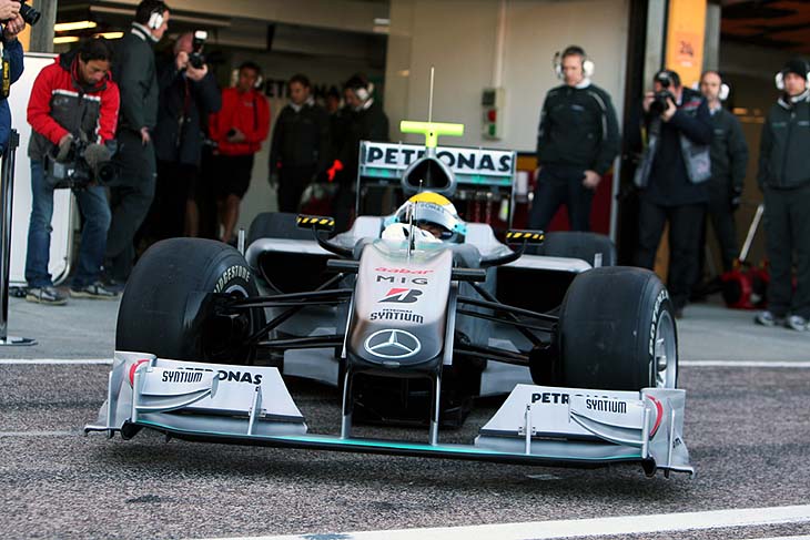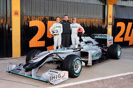 Η Mercedes είχε πραγματοποιήσει παρουσίαση στη Στουτγάρδη στις 25 Ιανουαρίου, ωστόσο, εκεί είχε αποκαλυφθεί μονάχα ο φετινός χρωματισμός, επάνω σε μια περυσινή Brawn BGP001 και περίμενε μέχρι λίγο πριν την έναρξη των δραστηριοτήτων στη Βαλένθια για να αποκαλύψει το μονοθέσιο με το οποίο θα προσπαθήσει να υπερασπιστεί τους περυσινούς τίτλους της.