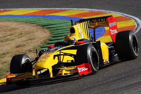 Τον τελευταίο χρόνο της ημέρας σημείωσε ο Robert Kubica (ο οποίος είχε καινούργια χρώματα στο κράνος του, αρμοστά με το βάψιμο της Renault), στο τιμόνι της R30, η οποία έφερε καινούργιες αεροτομές εμπρός και πίσω (αν και το ρύγχος παρέμεινε το περυσινό). Ο Πολωνός οδηγός, έπειτα από τους αρχικούς ελέγχους συστημάτων και την εξοικείωση με τα καινούργια ελαστικά, πειραματίστηκε μαζί με τους μηχανικούς του με την κατανομή βαρών και την παρακολούθηση της φθοράς των φρένων. Ο Kubica δήλωσε ότι η ημέρα πήγε καλά και ότι δεν υπήρξαν προβλήματα. Αύριο θα ξεκινήσει τη δουλειά επάνω στο ζύγισμα του μονοθεσίου. Ο 25χρονος πιστεύει ότι είναι πολύ εύκολο ο οδηγός να υποπέσει στο λάθος να υπερφορτώσει τα καινούργια εμπρός ελαστικά τα οποία κρίνει ότι κάνουν τα μονοθέσια πιο υποστροφικά στις γρήγορες στροφές. Ο Kubica δήλωσε ότι η R30 είναι εύκολη στην οδήγησή της, αλλά παραδέχθηκε ότι θα πρέπει να αλλάξει κάποια πράγματα στο στιλ οδήγησής του από αυτά που έχει συνηθίσει, ωστόσο υπάρχει αυτοπεποίθηση στη συμπεριφορά του μονοθεσίου και ο Πολωνός βρήκε μερικά πολύ θετικά στοιχεία στο πακέτο, γεγονός που κάνει τη ζωή του πιο εύκολη. Η Renault δεν ενθουσίασε με τους χρόνους της, αλλά ο Kubica δήλωσε ότι δεν τον ενδιαφέρουν οι χρόνοι, καθώς σήμερα η ομάδα δεν έδινε σημασία στο χρονόμετρο, αφού οι προτεραιότητές της ήταν εντελώς διαφορετικές. Ο Πολωνός δήλωσε ότι δεν έχει οδηγήσει ξανά στη ζωή του με τόσα καύσιμα στο ρεζερβουάρ και προσέθεσε πως υπάρχουν μερικές τροποποιήσεις που πρέπει να γίνουν. Θα πρέπει να βρεθεί ο συμβιβασμός μεταξύ των πραγμάτων που έχει συνηθίσει ο ίδιος και αυτών που εφαρμόζει η ομάδα. Ο Kubica θα οδηγήσει την R30 και αύριο, ενώ την Τετάρτη ο Vitaly Petrov θα κάνει μαζί της το ντεμπούτο του πίσω από το τιμόνι ενός μονοθεσίου Formula 1.