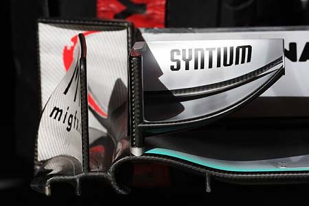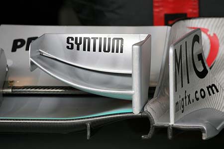 Η Mercedes διέθετε σήμερα μια καινούργια εμπρός αεροτομή , η οποία διαφοροποιείται ελάχιστα από την παλιά (επόμενη φωτογραφία). Το εξωτερικό πλευρικό τοίχωμα του ανώτερου στοιχείο έχει μετακινηθεί προς την εξωτερική πλευρά του μονοθεσίου, στον ίδιο άξονα με το πίσω πλευρικό τοίχωμα της αεροτομής. Επίσης, τροποποιημένο είναι και το εξωτερικό χείλος των πτερυγίων (που ανασηκώνεται περισσότερο) και ο διαχωρισμός στο κάτω μέρος του οριζοντίου επιπέδου του πλευρικού τοιχώματος.