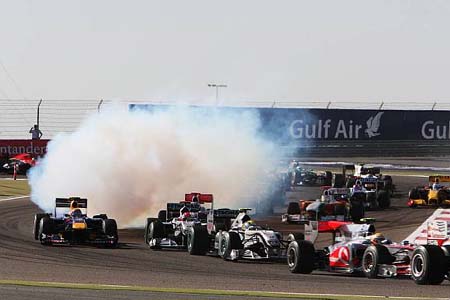 Ο Webber αφήνει σύννεφο καπνού πίσω του στην πρώτη στροφή