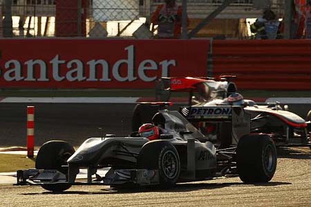 Την ίδια άποψη συμμερίζεται και ο Michael Schumacher: «Tα προσπεράσματα είναι βασικά αδύνατα, εκτός και αν κάποιος κάνει λάθος. Αυτή είναι η δράση που θα έχουμε δυστυχώς, με αυτού του είδους περιβάλλον αγωνιστικής στρατηγικής». Ο Γερμανός παραδέχθηκε ότι κατέστρεψε τα ελαστικά του και πρόσθεσε ότι έπειτα από τρία χρόνια απουσίας, θα πρέπει να προσαρμοστεί στα καινούργια δεδομένα που ισχύουν στο σπορ.