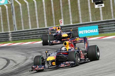 Η Red Bull κατάφερε στη Μαλαισία να φέρει για πρώτη φορά φέτος αμφότερα τα μονοθέσιά της στον τερματισμό χωρίς προβλήματα, σημειώνοντας το 1-2, με τον Sebastian Vettel να χτίζει τα θεμέλια της νίκης του στην εκκίνηση, όπου πέρασε επικεφαλής από την τρίτη θέση μέχρι την πρώτη στροφή για να διατηρηθεί εκεί έως τον τερματισμό. Το θρίαμβο της Red Bull συμπλήρωσε ο poleman Mark Webber, ο οποίος, απογοητευμένος, τερμάτισε πίσω από τον team mate του για να σημειώσει το 1-2 για την ομάδα.