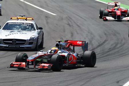 Συνεπώς, ο ελάχιστος χρόνος Δ από τον οποίο πρέπει να κινηθούν πιο αργά οι οδηγοί στο γύρο, υπό το καθεστώς αυτοκινήτου ασφαλείας θα αυξηθεί από το 120% ενός γρήγορου γύρου, που ήταν μέχρι το Ευρωπαϊκό GP. ΑντΆ αυτού, οι οδηγοί θα πρέπει να κινούνται με τον εκτιμώμενο ρυθμό που ακολουθεί η Mercedes-Benz SLS AMG στην εκάστοτε πίστα.
