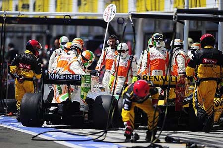 Η Renault, όπως αναφέραμε δέχθηκε πρόστιμο 50.000 δολαρίων, επειδή στη φρενήρη δράση που προκάλεσε στο pit lane η επέμβαση του αυτοκινήτου ασφαλείας, ο σηματωρός της γαλλικής ομάδας άφησε τον Kubica να φύγει από το box ενώ ερχόταν ο Sutil, ξεχνώντας ίσως ότι το pit του Γερμανού είναι το αμέσως επόμενο. Αν δε βρισκόταν εκεί το box της Force India και ο Sutil συνέχιζε ευθεία στο pit lane, δε θα υπήρχε κανένα πρόβλημα, ωστόσο ο Γερμανός έστριψε δεξιά, την ώρα που ο Kubica έβγαινε από το pit της Renault. Ήταν μεγάλο ευτύχημα που η σύγκρουση δεν προκάλεσε κάποιο τραυματισμό στους παρευρισκόμενους μηχανικούς. Oι αγωνοδίκες επέβαλαν ποινή στάσης 10 δλ. στα pits στον Κubica για το συμβάν, πέραν του οικονομικού προστίμου, πριν ο Πολωνός εγκαταλείψει τον αγώνα λόγω ζημιών στην εμπρός αριστερή ανάρτηση του μονοθεσίου του.