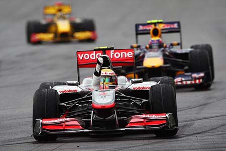 Ο Hamilton δήλωσε μετά τον αγώνα ότι συνθήκες σαν τις σημερινές μπορούν να κάνουν τον αγώνα λοταρία. Ο Βρετανός ανέφερε ότι οι συνθήκες ήταν πολύ δύσκολες όταν άρχισε να βρέχει, ενώ αστειευόμενος, δήλωσε ότι ευχόταν το αυτοκίνητο ασφαλείας να παραμείνει περισσότερους γύρους στην πίστα κατά την τελευταία παρέμβασή του. Ωστόσο, σταμάτησε να βρέχει και οι συνθήκες στην πίστα βελτιώθηκαν. Στους τελευταίους γύρους, ο Hamilton πήγαινε πολύ προσεκτικά, προσέχοντας τη μικρή διαφορά του από τον Webber και εξασφαλίζοντας ότι θα φτάσει έως τη γραμμή του τερματισμού χωρίς... παρατράγουδα.
