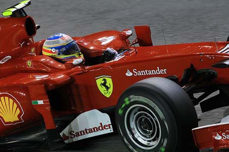 Όπως και στη Monza, o Alonso κατέκτησε την pole position με την πρώτη του προσπάθεια στο Q3, την οποία κανένας δεν κατάφερε στη συνέχεια να καταρρίψει, συμπεριλαμβανομένου του ιδίου. Ωστόσο, η ημέρα δεν ήταν ρόδινη για τη Ferrari, η οποία θα δει το ένα μονοθέσιό της στην pole position του αυριανού αγώνα και το άλλο στην τελευταία θέση εκκίνησης, καθώς ο Felipe Massa εγκατέλειψε στο 10ο λεπτό του πρώτου σκέλους, λόγω προβλήματος στην ηλεκτρονική διαχείριση του κιβωτίου της F10. Συνεπώς, ο Βραζιλιάνος δε θα μπορεί αύριο να βοηθήσει τον Alonso, στερώντας βαθμούς από τους υπόλοιπους στον αγώνα. H Ferrari μάλιστα, έφερε τον Alonso πίσω στα pits στο Q2 για να επαναπρογραμματίσει το μονοθέσιό του και ο Ισπανός ανέφερε ότι η ομάδα επέλεξε μια πιο ασφαλή χαρτογράφηση κινητήρα. Ο Alonso δήλωσε επίσης ότι η ομάδα χρησιμοποιεί πειραματικά εξαρτήματα στο κιβώτιό της αυτό το σαββατοκύριακο, όπως αυτό που αστόχησε στο δικό του μονοθέσιο εχθές, αφότου έβαλε την όπισθεν.