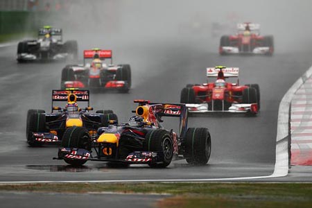 Παρά το γεγονός ότι η Red Bull διέθετε και πάλι το ταχύτερο μονοθέσιο του σαββατοκύριακου και ο Vettel έλεγχε τον αγώνα, η ομάδα δεν κατάφερε να νικήσει ή να βαθμολογηθεί καν -για πρώτη φορά φέτος. Ο Webber αποτέλεσε την πρώτη σημαντική απώλεια της ημέρας, αφού στο 19ο γύρο (το δεύτερο της πραγματικής δράσης), πάτησε άτσαλα στο εξωτερικό kerb της στροφής 12, έχασε τον έλεγχο της Red Bull και χτύπησε στον τοίχο. Ο Alonso κατάφερε να αποφύγει το εκτός ελέγχου μονοθέσιο του Αυστραλού, αλλά ο Nico Rosberg όχι. Ο Γερμανός είχε μια πολύ καλή πιθανότητα να ανέβει στο βάθρο σήμερα, έχοντας ήδη προσπεράσει τον Hamilton, αλλά επέλεξε να αποφύγει τον Webber από την αριστερή πλευρά της πίστας, προς την οποία κατευθυνόταν η ανεξέλεγκτη Red Bull...