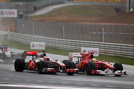 Ο Massa προσπερνάει τον Button στον πρώτο γύρο πραγματικής δράσης.