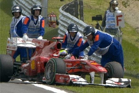 Ο Massa σταματάει στην πίστα 30 λεπτά πριν τη λήξη, λόγω προβλήματος με τα ηλεκτρικά του κιβωτίου της Ferrari.