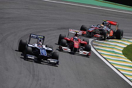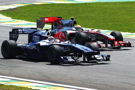 Οι Βραζιλιάνοι οδηγοί ήταν άτυχοι σήμερα... Ο Rubens Barrichello βρισκόταν στην 7η θέση, όταν ένα πρόβλημα στο μπουλόνι του πίσω δεξιού τροχού κόστισε αρκετό χρόνο κατά το pit stop του. Στον 35ο γύρο, ο Barrichello είχε μια επαφή με την Toro Rosso του Jaime Alguersuari, η οποία προκάλεσε την αστοχία του εμπρός αριστερού ελαστικού της Williams, απαιτώντας ένα επιπλέον pit stop. Συνεπώς, ο Βραζιλιάνος κατέληξε στη 14η θέση, εμπρός από τον συμπατριώτη του, Felipe Massa.