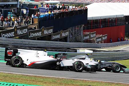 Ο Rosberg σε μια μάχη με τον Kobayashi.